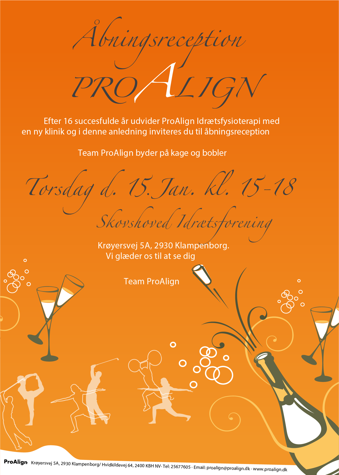 SIF har indgået samarbejde med ProAlign Idrætsfysioterapi og inviterer til åbningsreception torsdag den 15. januar kl. 15 - 18 på Krøyersvej 5A. Kom og hils på teamet bag.